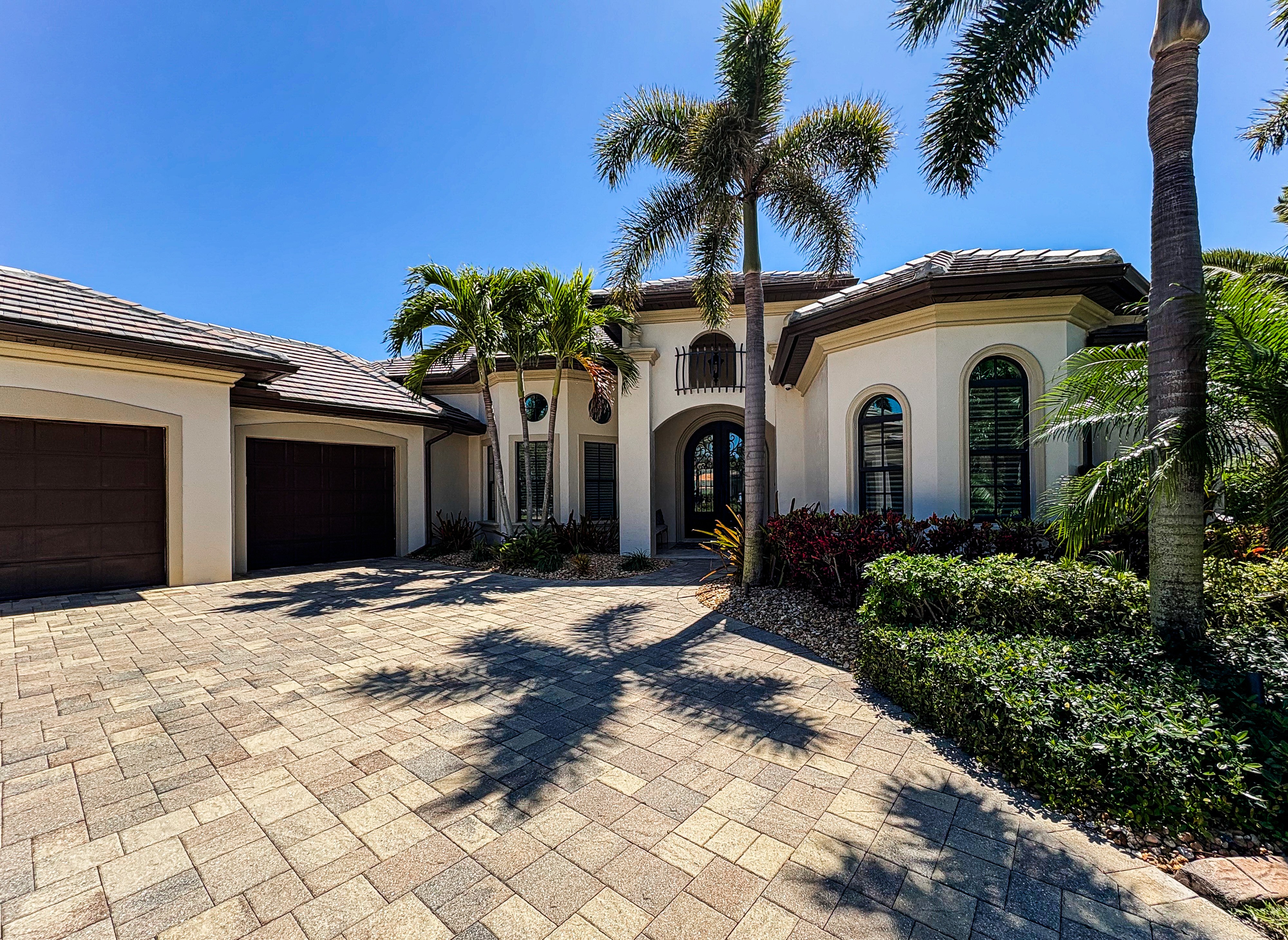 Circular Paver Driveway & Oversized 3-Car Garage with Built-In Cabinets